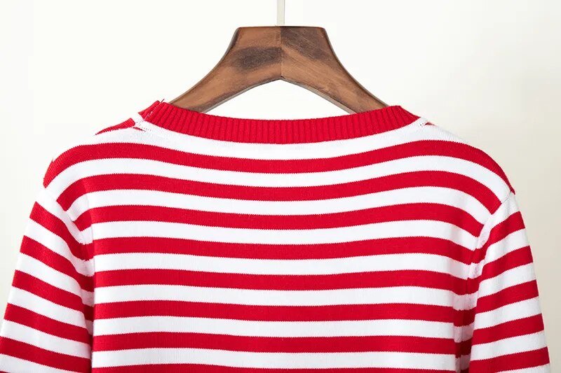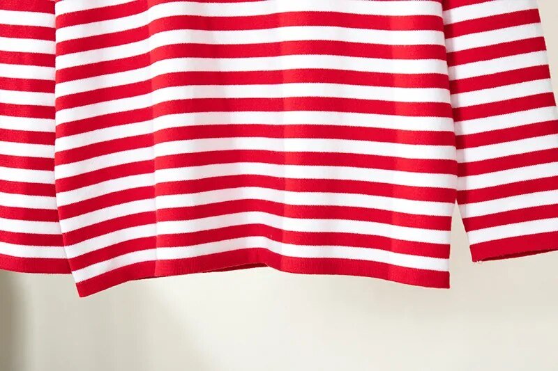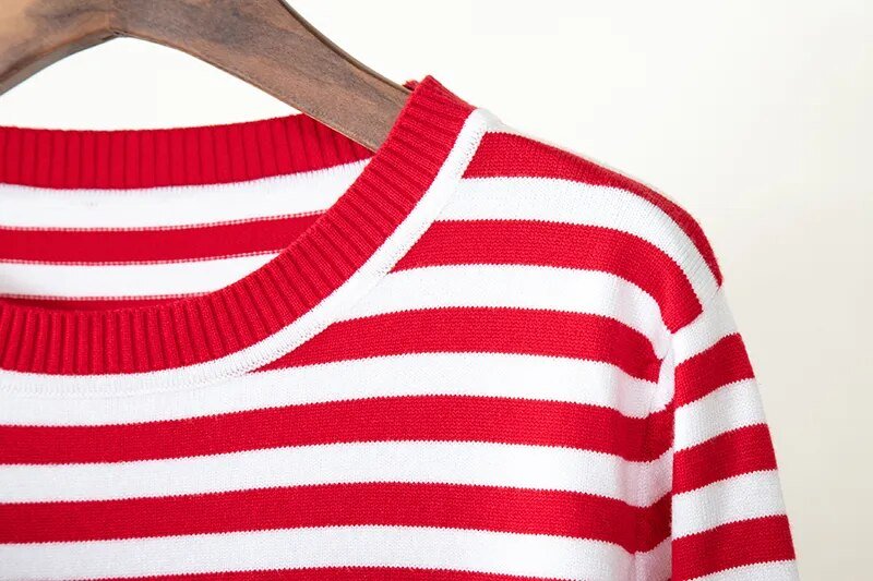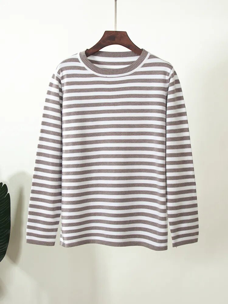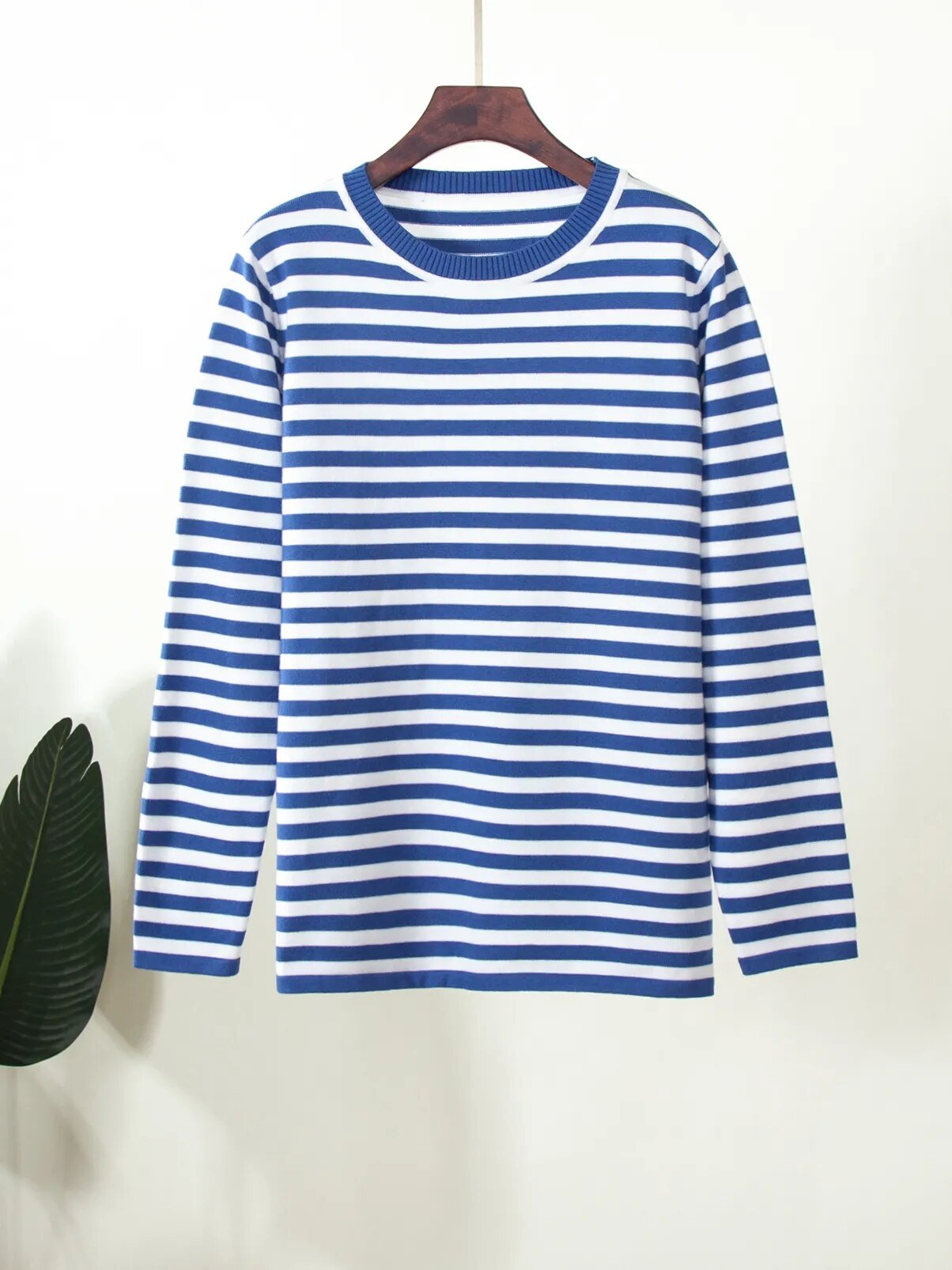 Bornladies Knitted Stripe Sweater Women 2023 Autumn Winter Loose Casual Thick Pullovers Female Warm Long-sleeved Round Neck Tops