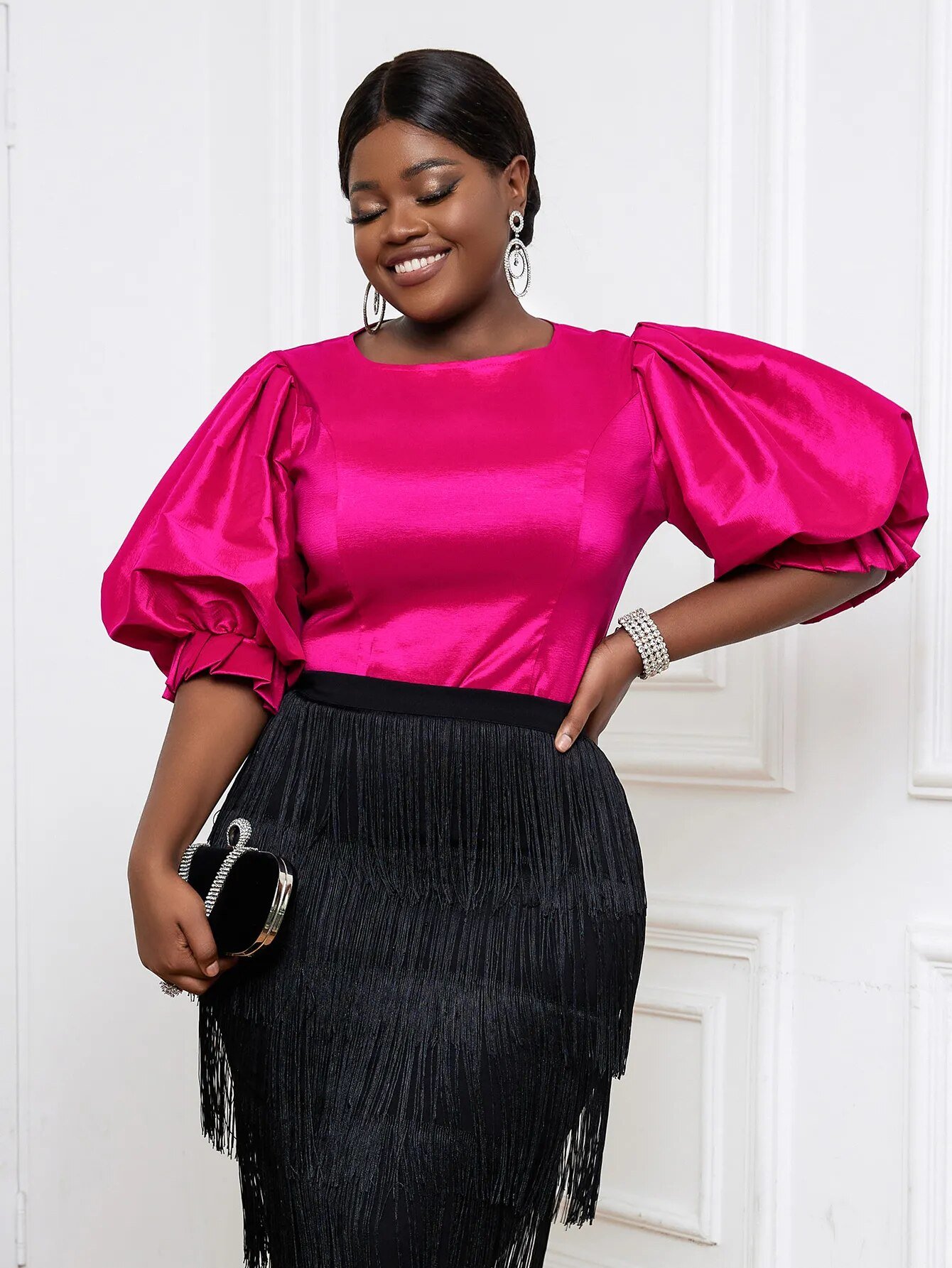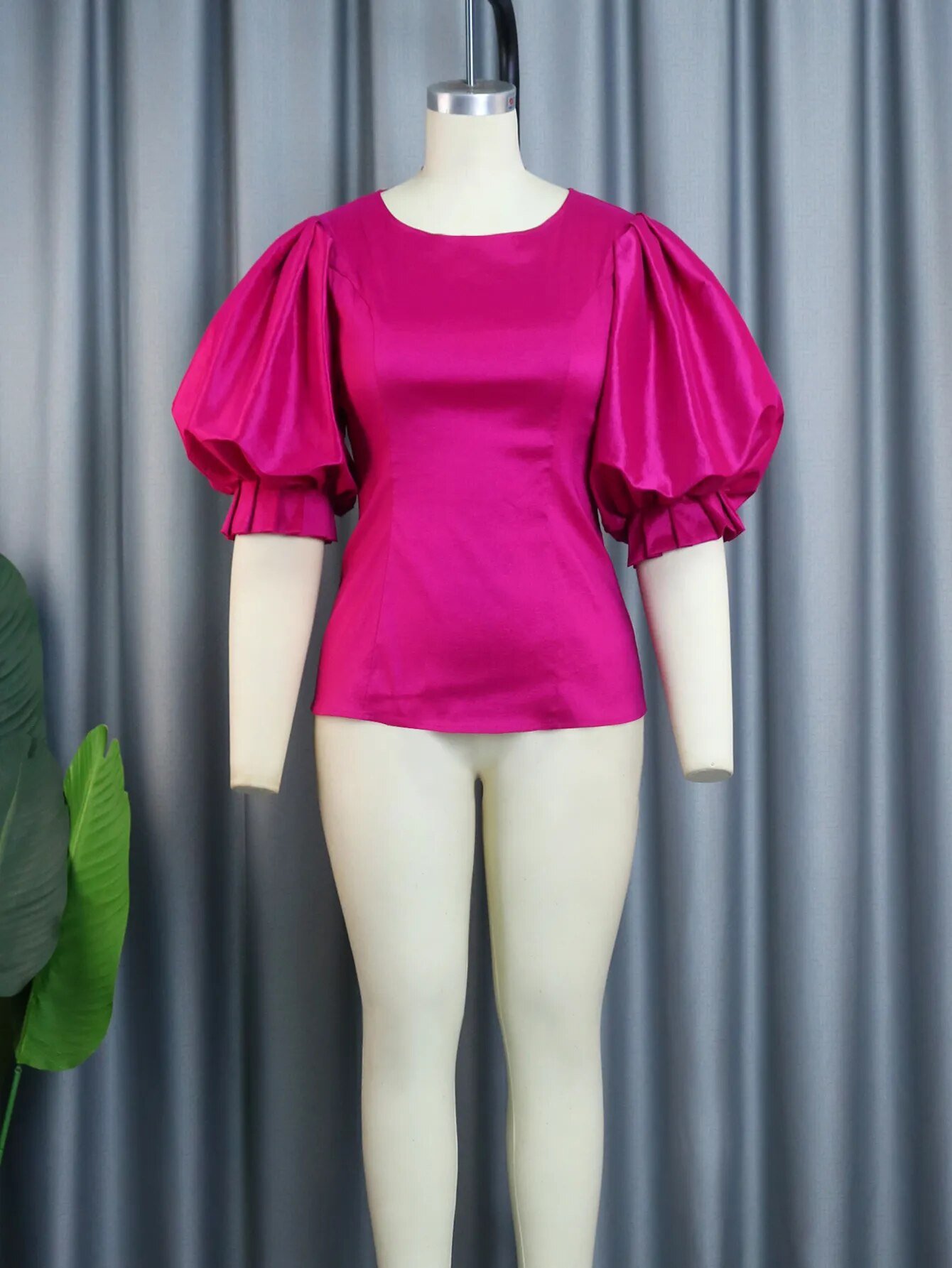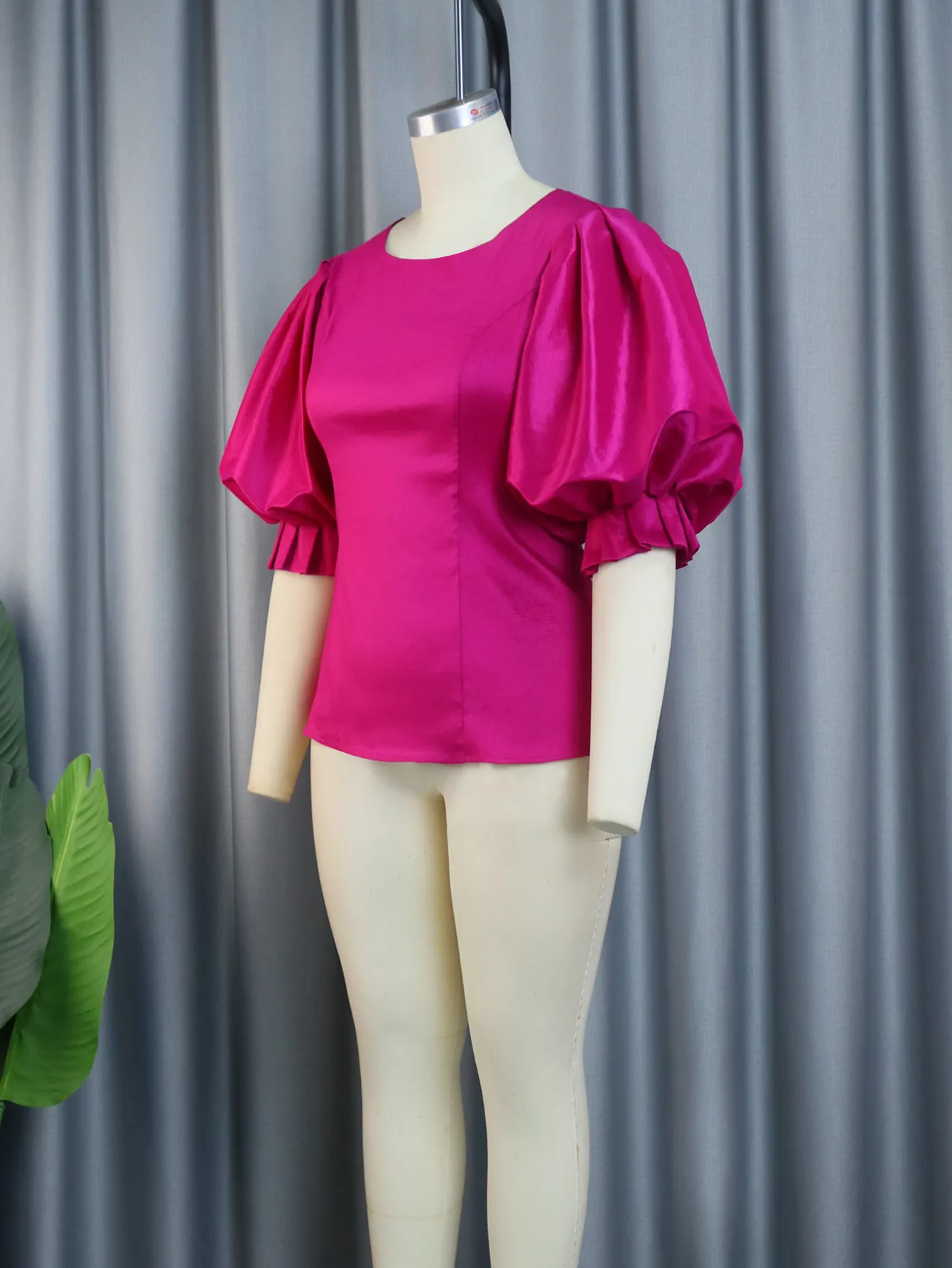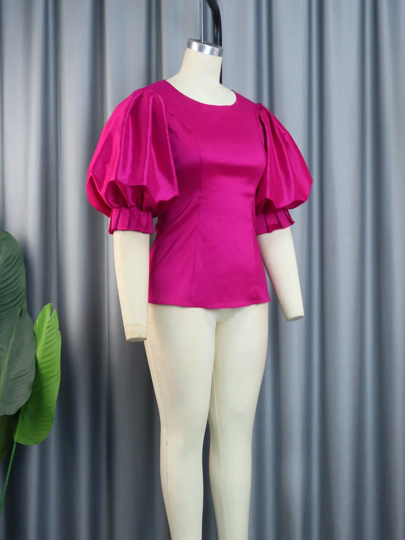Be the first to review “Cute Pink Blouse Tops for Women Summer Shiny Ruffles Lantern Sleeve Sweet Large Size Shirt Elegant Office Wear Trendy Clothes”