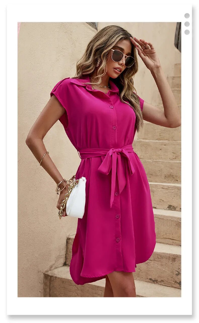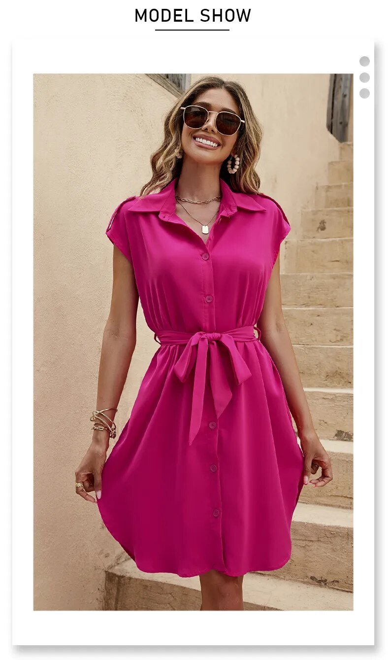 KEBY ZJ Summer Dresses Woman 2022 Rose Red Sleeveless Turndown Collar Button Forked Mini Dress City Lady Casual Short Dress