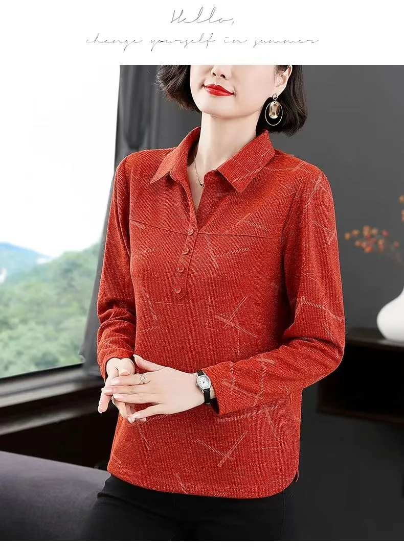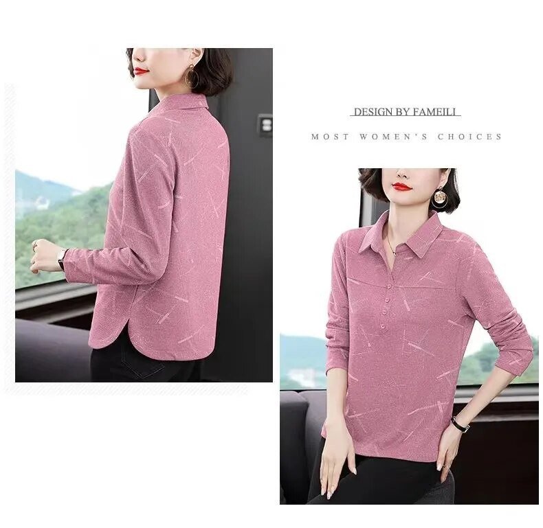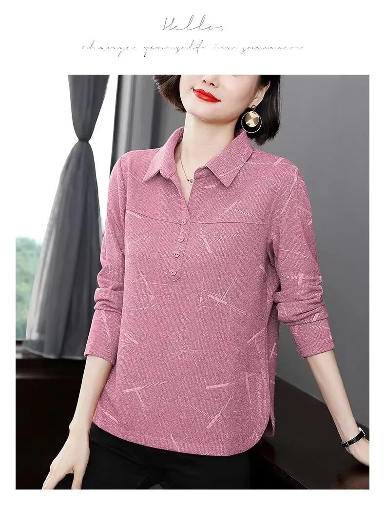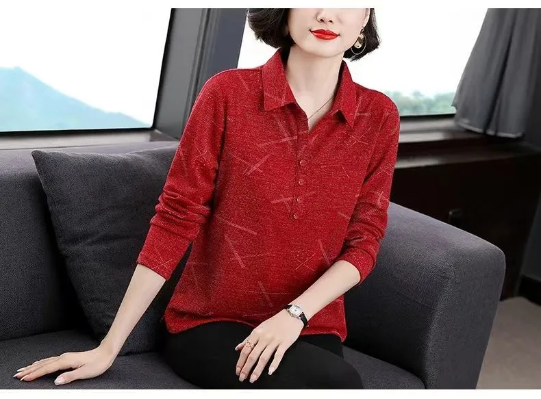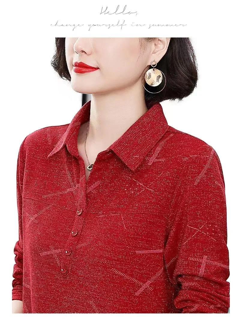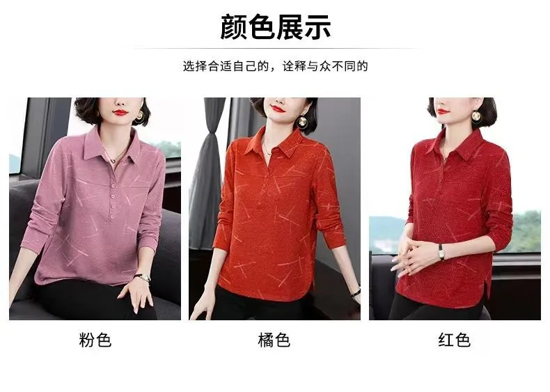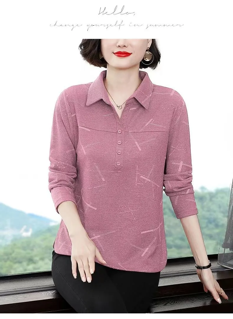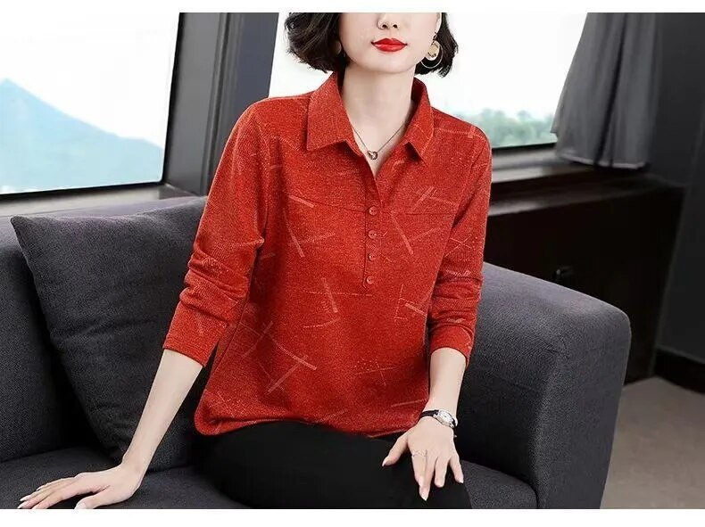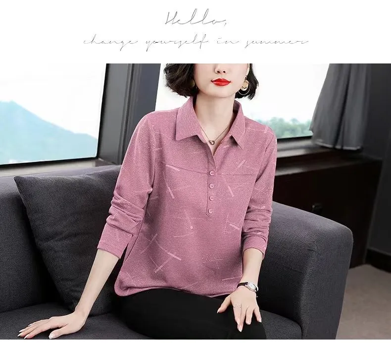 M-5XL Womens Polo Shirts Spring Autumn Long Sleeve Turn-down Collar Solid Loose Casual Soft Female Tops Tees Ladies Clothes Hw47
