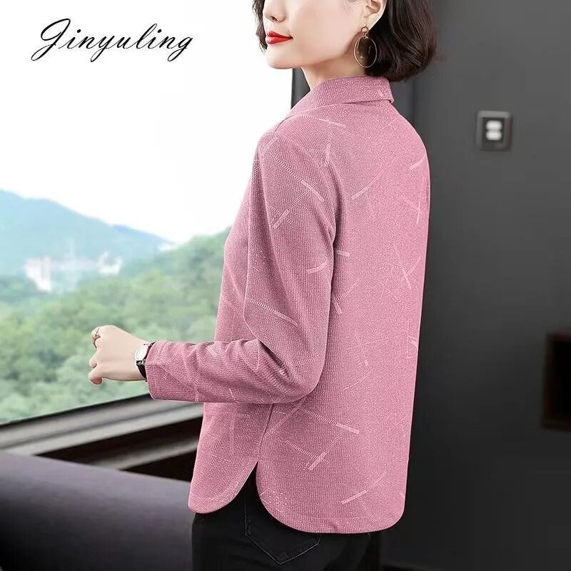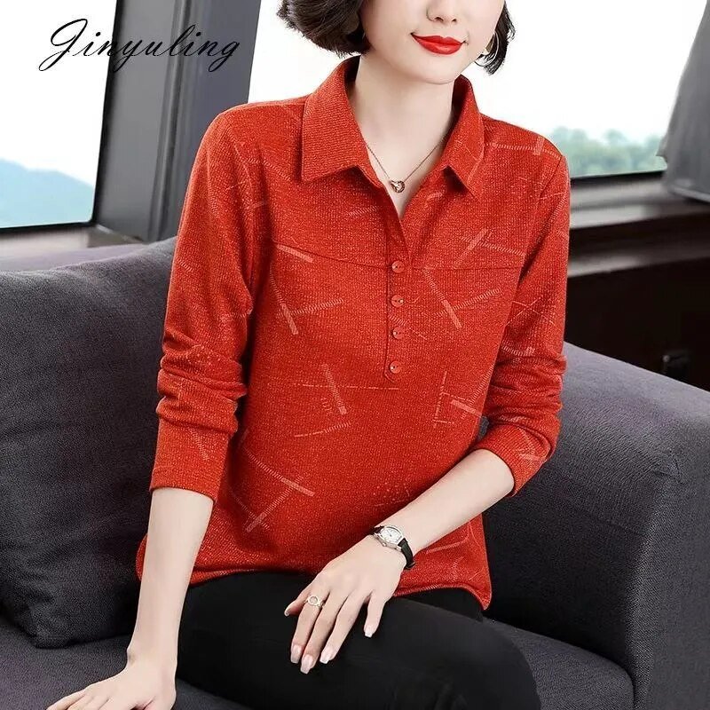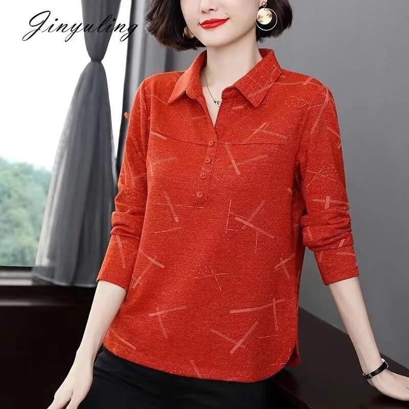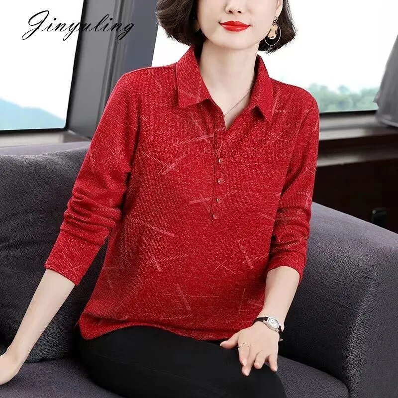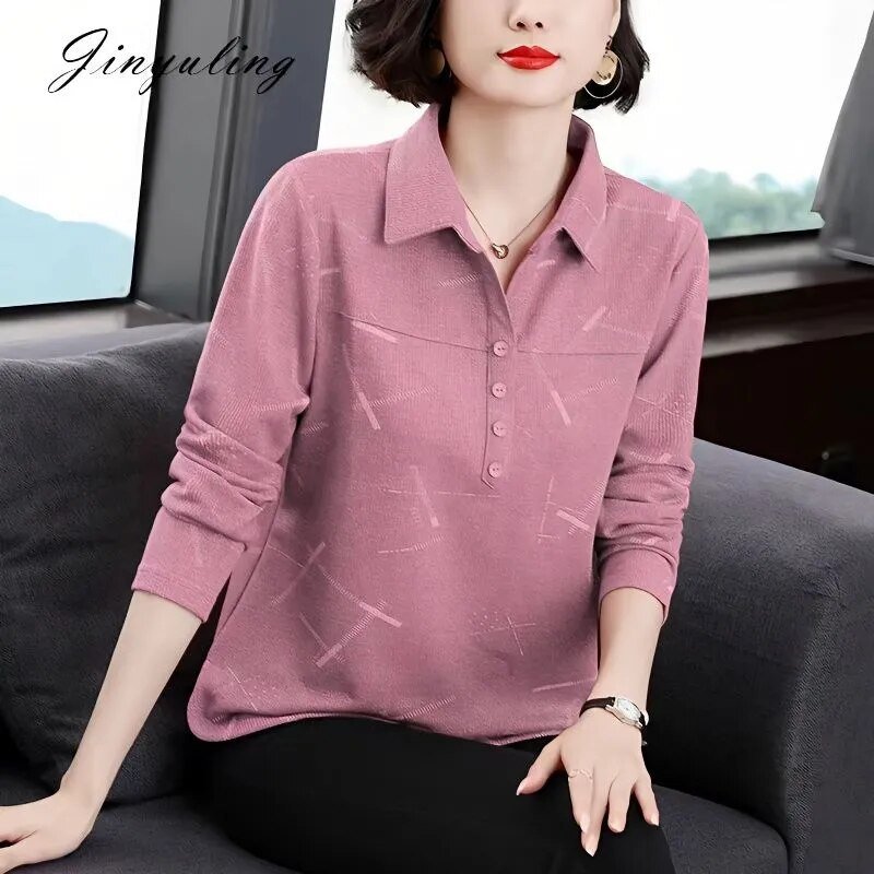 M-5XL Womens Polo Shirts Spring Autumn Long Sleeve Turn-down Collar Solid Loose Casual Soft Female Tops Tees Ladies Clothes Hw47
