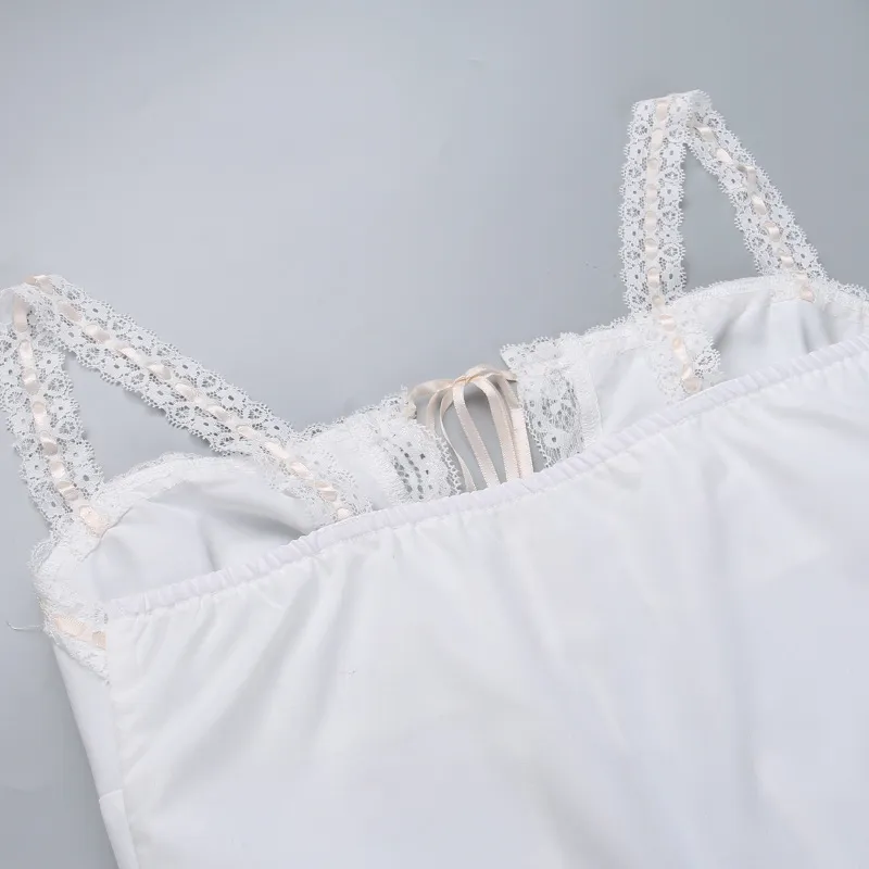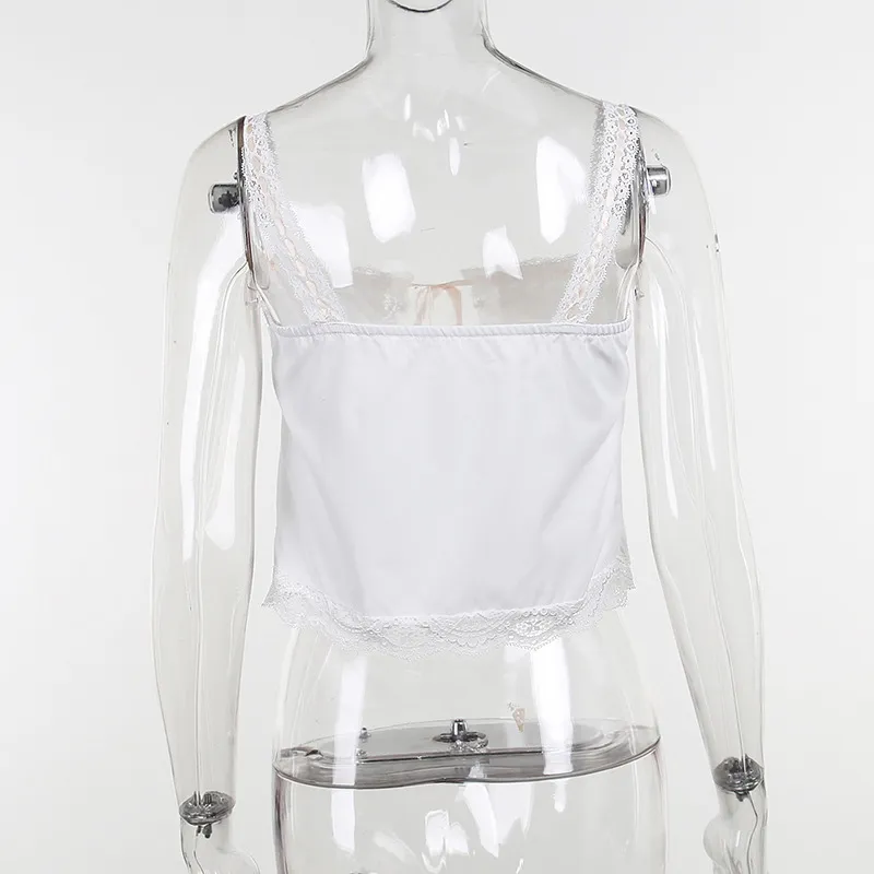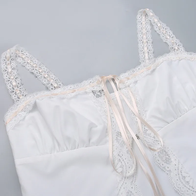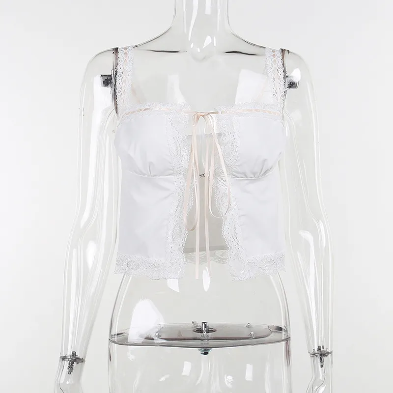 Sampic Lace Patchwork Straps Bow Backless Crop Top Summer Women Sexy Sweet Sleeveless Tank Top Party Club Vest