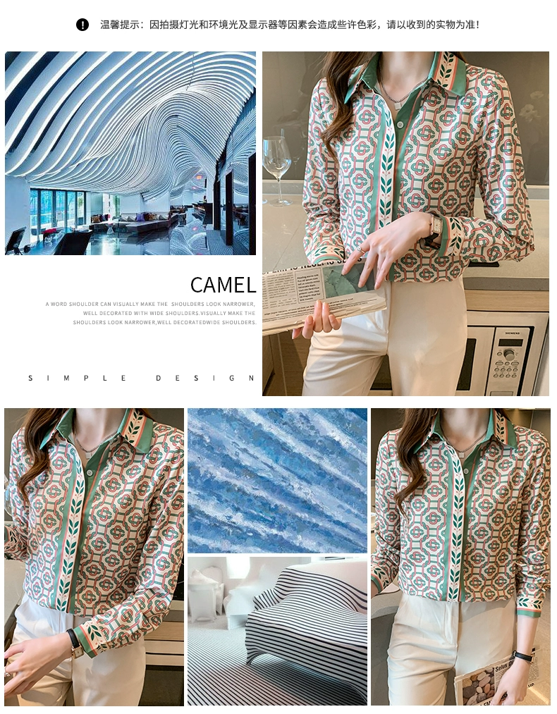 Summer Shirt Women Blouse Long Sleeve Top Printing Casual Loose Lapel Chiffon Korean Fashion