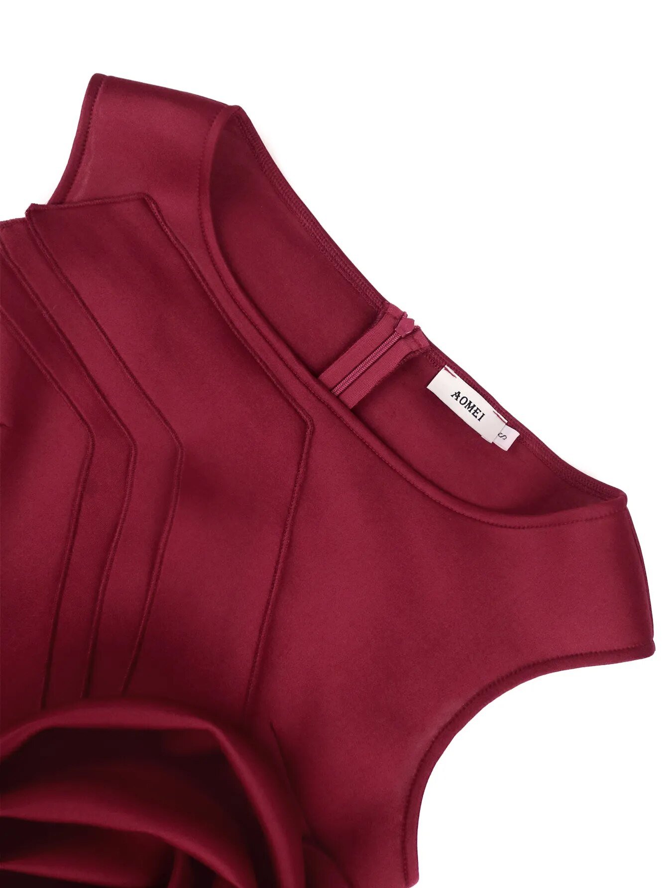 Women Burgundy Midi O Neck Appliques Robes Sleeveless Flower High Waist Bodycon Plus Size Party Evening Dresses Event Gowns