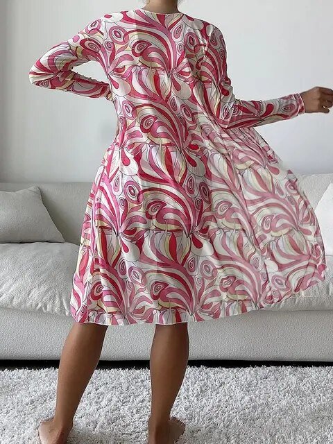 2023 Autumn New Women’s Fashion Elegant Commuting POLO Shirt Comfortable and Versatile Printed Long Sleeve V-Neck Belt Shirt