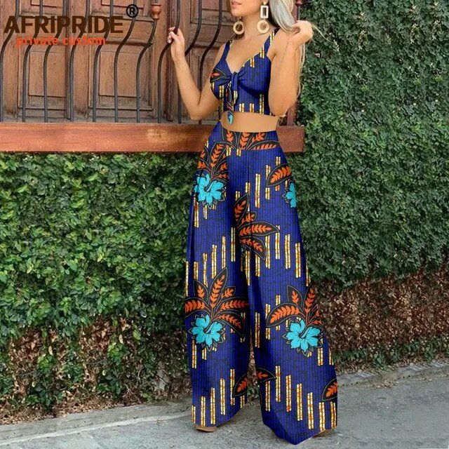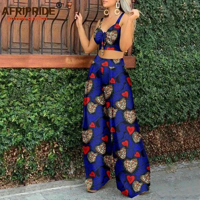 African Clothes for Women Sleeveless Crop Top and Ankara Pants Dashiki Outfits 2 Piece Set Print Sexy Party Wear A2226006